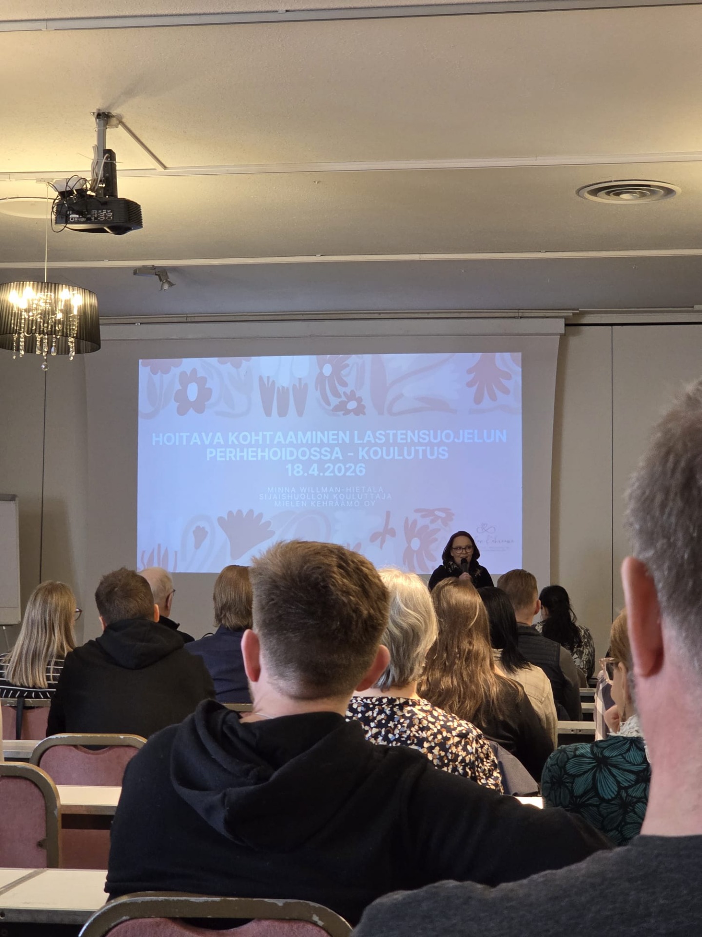 Kevään koulutuspäivä kokosi yhteen runsaan joukon lastensuojelun perhehoitajia Revontuleen Hankasalmelle lauantaina. Minna wilman- Hietala piti antoisan ja monipuolisen koulutuksen hoitavasta kohtaamisesta lastensuojelun perhehoidossa. Päivä piti sisällään myös ryhmätöitä, keskusteluja sekä tietenkin hyvää ruokaa.