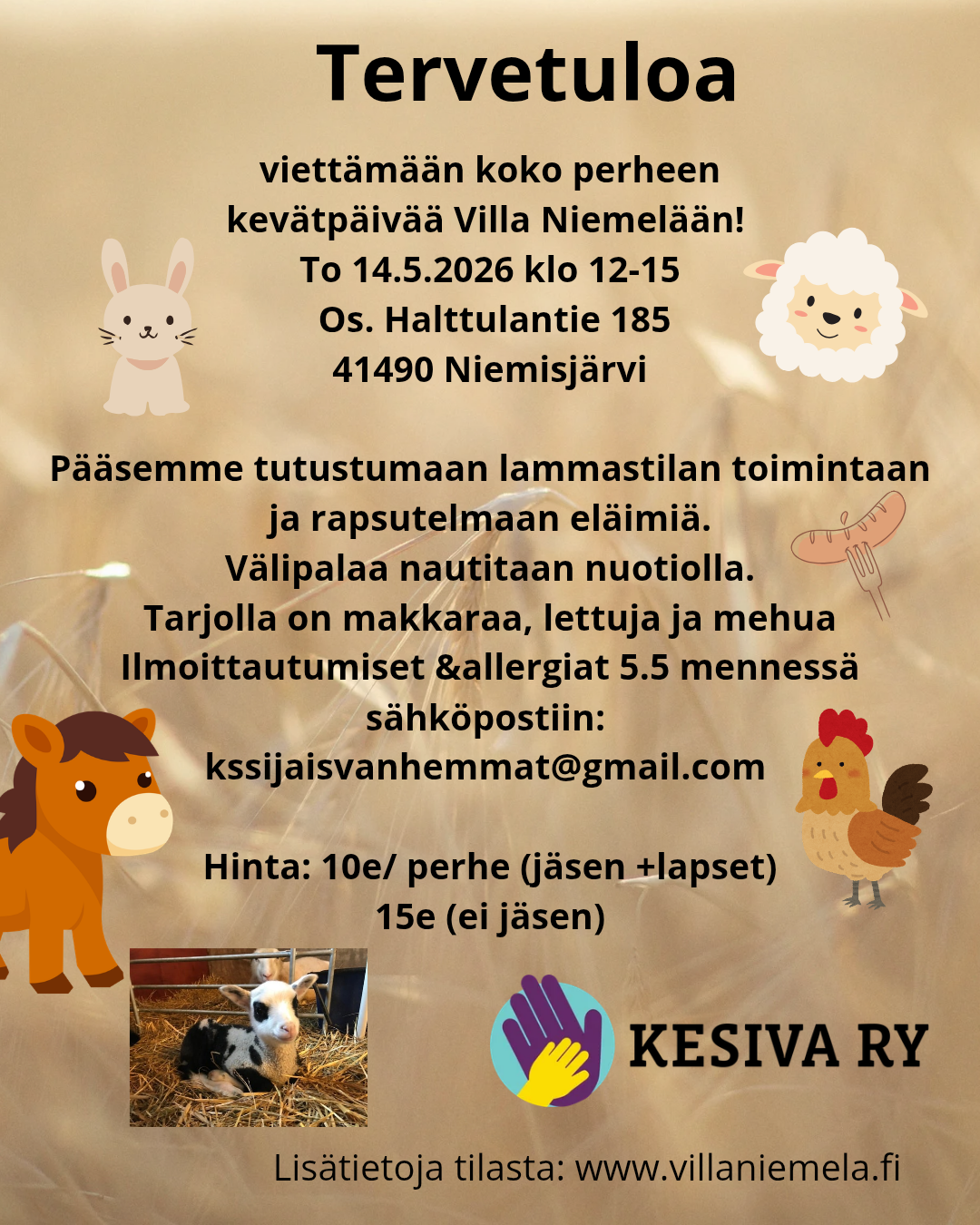 Kesiva Perhehoitajat ry:n sääntömääräinen vuosikokous pidetään ke 12.3.2025 klo 18, Palokan ABC:n kokoustilassa, os. Palokanorsi 10. Ilmoittautumiset kokoukseen 6.3. mennessä sähköpostiin kesivaperhehoitajat@gmail.com